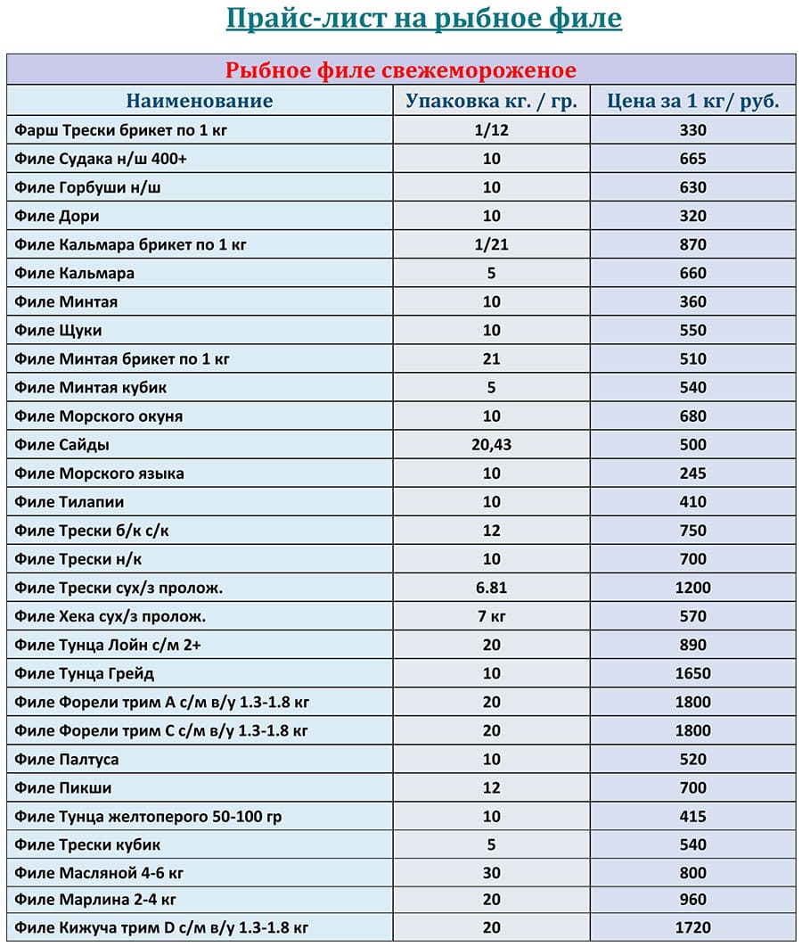 Прайс-лист рыбное филе оптом с ценами на МАРТ 2026 года